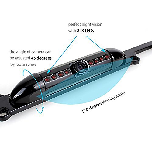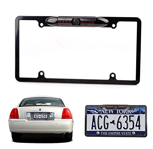 XJW Viewing Angle Universal Car License Plate Frame Mount Rear View Camera, 8 IR LED