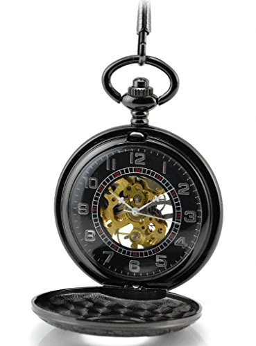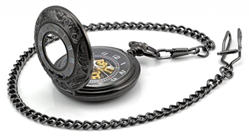 -. Feature : Black Secret Roman Numerals Mechanical Movement Pocket Watch / 1*Long Chain: 80cm, 1*Cow Boy Chain: 37.5cm, Pandent Diameter: 4.7cm / High-end Skeleton Arabic Numerals Big Pendant / Material: Brass Plated Stainless Steel / Gift Bag with Brand Name "Infinite U Jewellery"