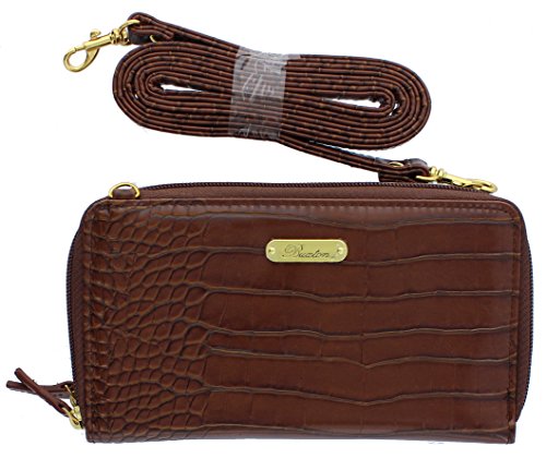 Two full gusseted zip-around compartments and outside slip pocket Multiple card slots, utility pockets and currency sleeve