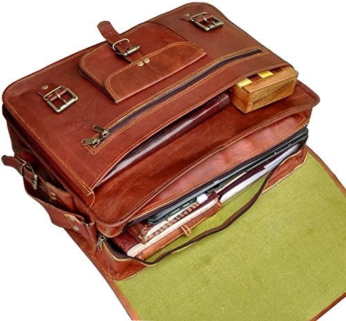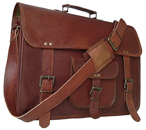-. Title : 16 Inch Leather Unisex Real Leather Messenger Bag for Laptop Briefcase Satchel ...