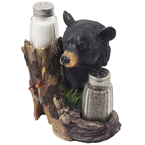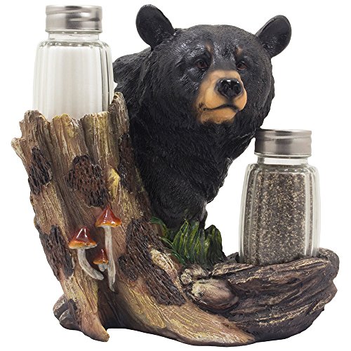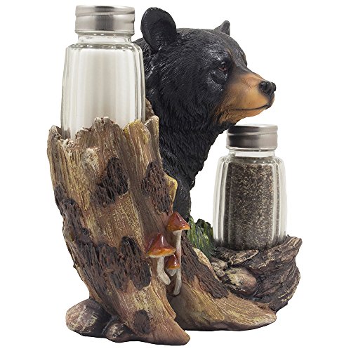 Black Bear Glass Salt and Pepper Shaker Set Sculpture Kitchen Decor in Rustic Lodge and Cabin Figurines by Home-n-Gifts