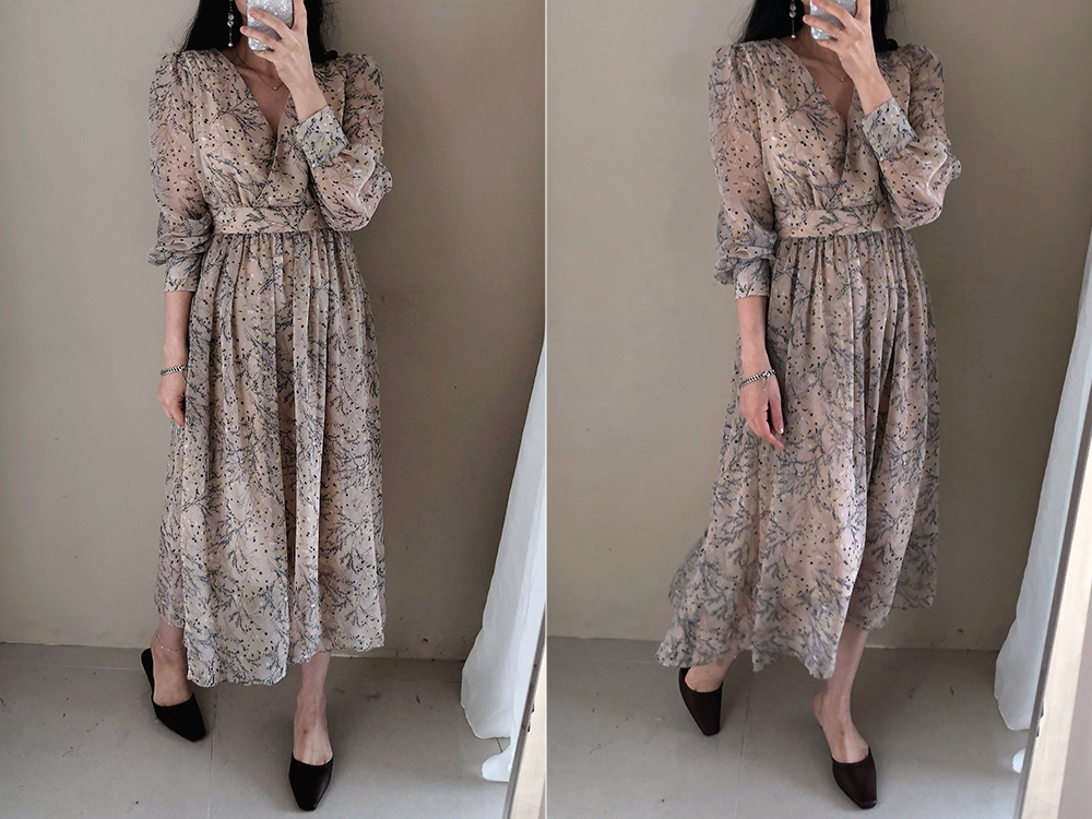 잔잔한 플라원 패턴의 쉬폰 원피스 소개해드릴게요.