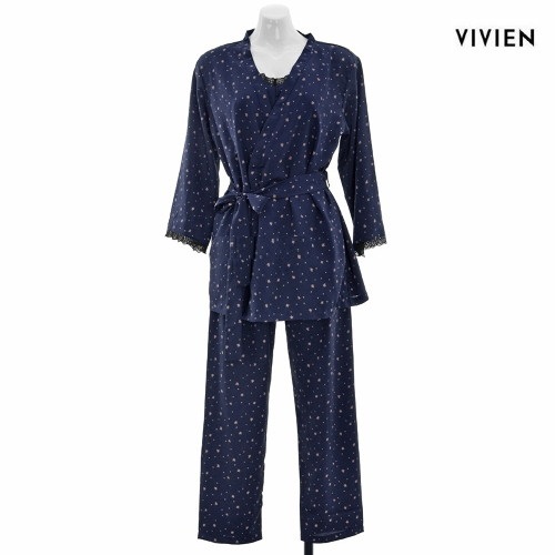폴리 별 프린트 파자마로 캐미솔, 팬츠, 짧은 가운로 구성된 3PCS입니다~