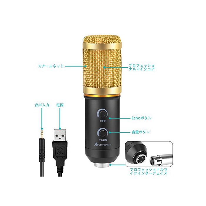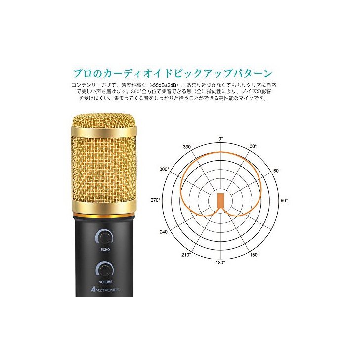 원본상품명: コンデンサマイク AMZtronics 3.5mm プラグインパワ マイクフォン 音量調節可能/ 響調節可能 カラオケマイク 集音/高音質/音/宅/ゲム況/生放送 モノラル/PCボ