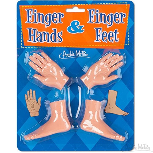 THIS ITEM IS REALLY REALLY HANDY By popular demand! We've taken two of our best-selling products and mushed them together into one super product that will transform hands all over the world. This set of four soft vinyl finger puppets, two 2-3/4" (7 cm) tall hands and two 2" (5.1 cm) tall feet, is packaged on a blistercard for easy buying. Your fingers will never be the same!Feature