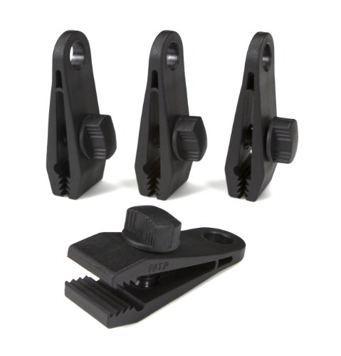 -. Feature : Unique locking clamp design grips material directly for superior holding power / Provides instant anchor point to attach any standard bungee cord, tie down or rope / Red, high-impact nylon construction / Specially designed to secure tarps, canopies and covers / Simple and easy-to-use design