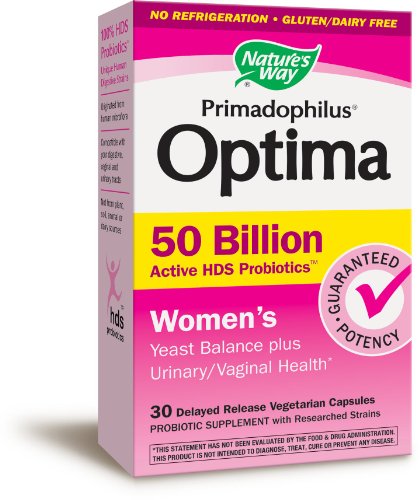 -. Binding : Health and Beauty -. Brand : Nature's Way -. EAN : 0033674103364 -. Feature : Primadophilus Optima Women's 50 Billion once- daily, shelf stable, gluten-free, no added sugar, vegetarian, probiotic with 50 billion CFUs to support women's unique needs / Primadophilus Optima Women's is a shelf-stable probiotic specially formulated with a higher ratio of Lactobacillus, the dominant type of good bacteria found in a healthy vaginal tract, to support a woman's unique needs / Primadophilus Optima products are potent probiotic formulas that contain 100% HDS Probiotics(TM) (human digestive strains), which are naturally compatible with your intestinal tract to support digestive and immune health* Multiple strains of Lactobacilli and Bifidobacteria including researched strains NCFM, Bl-04 and Bi-07 / Made with delayed-release capsules that resist stomach acid better than standard capsules to help probiotics survive stomach acid so they are delivered to the intestine where they are needed most / The probiotic potency (CFUs) claimed on the label is guaranteed until expiration, not at time of manufacture like some probiotic products -. IsAdultProduct : 0 -. Label : Everready First Aid -. LegalDisclaimer : These statements have not been evaluated by the FDA. These products are not intended to diagnose, treat, cure, or prevent any disease. -. Manufacturer : Everready First Aid -. MPN : 033674103364 -. NumberOfItems : 1 -. PackageQuantity : 1 -. PartNumber : 033674103364 -. ProductGroup : Health and Beauty -. ProductTypeName : HEALTH_PERSONAL_CARE -. PublicationDate : 2016-04-06 -. Publisher : Everready First Aid -. ReleaseDate : 2016-04-03 -. Size : 30 -. Studio : Everready First Aid -. Title : Nature's Way Primadophilus Optima Women's 50 Billion, 30 Count -. UPC : 033674103364
