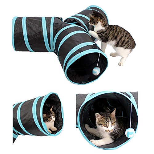 - EASILY FOR PORTABLE FUN : It’s a great way to play. The spacious tunnels built-in crinkle crackle paper,and there have a soft ball toy, your pet will be very curiously with every step in the tunnels, the tubes give your cat more ways to have fun. It provides exercise & self-amusement to your love cat & kitten & puppy& rabbit.