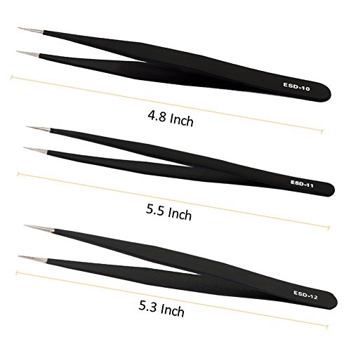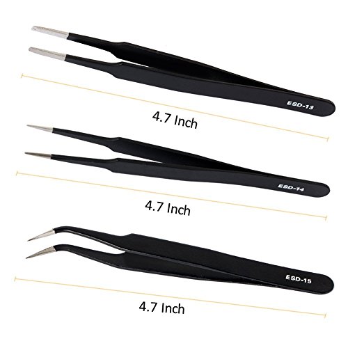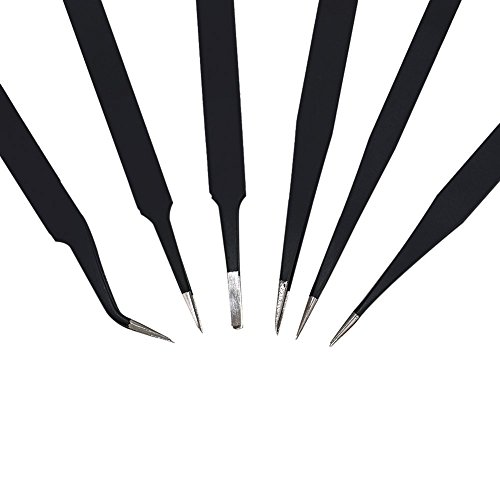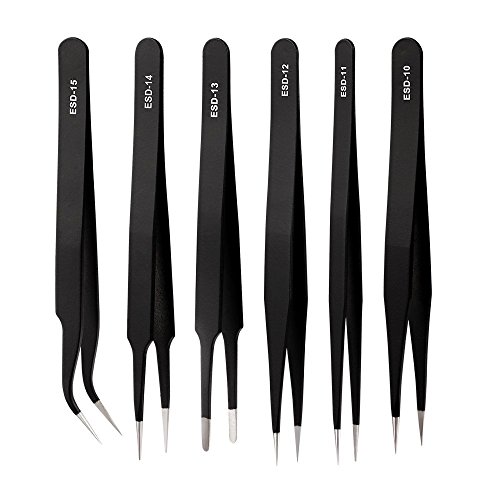 - 1. 6 Pcs ESD precision tweezer set for craft, jewelry-making, electronics, laboratory work, etc.