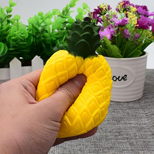 ?:Description: ?: ?:Quantity: 1PC ?:Material: Elastic Environmentally PU ?:Applicable age:more than 6 years old ?:Size:?6.5*6.5*12cm ?:Color: Yellow ?:Style: toy / collections / cellphone straps ?:Pattern: Pineapple ?:Note:Do not put it in your mouth ?:Squishy: slow rising ?: ?:Package Content: ?: ?:1PC Squeeze Pineapple Squishy Slow Rising Decompression Toys Easter Gift Phone Strap 0