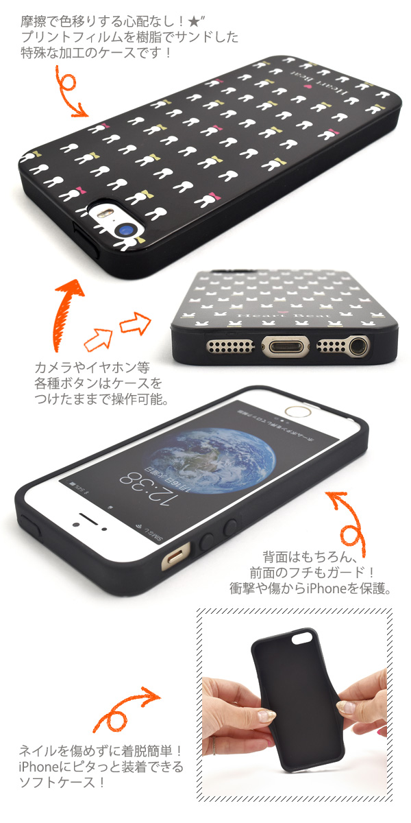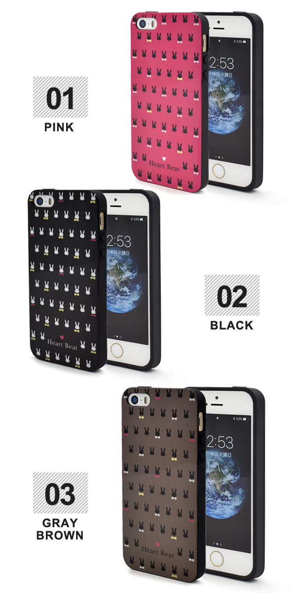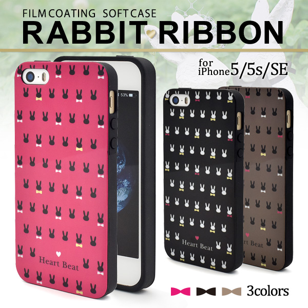 iPhone5/5s/SE用うさぎリボン柄ソフトケース