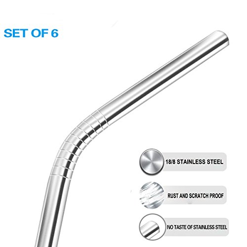• REUSABLE & DISHWASHER SAFE: Set of 6 stainless steel drinking straws, with cleaning brush included. Reusable and good for the environment, easy to clean.