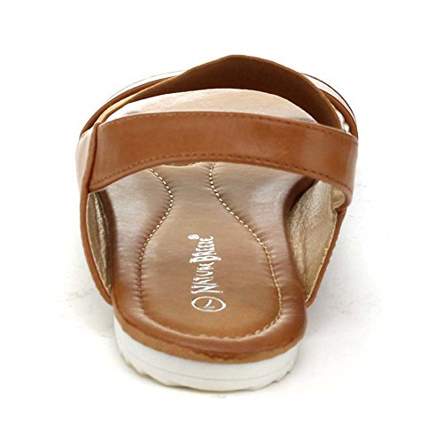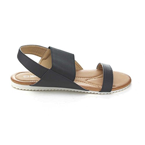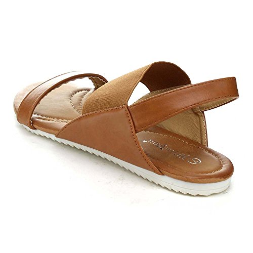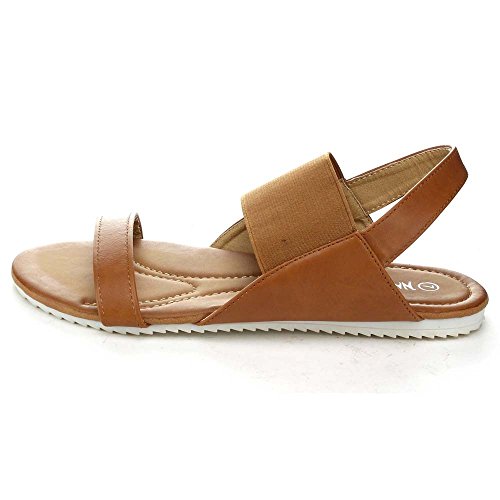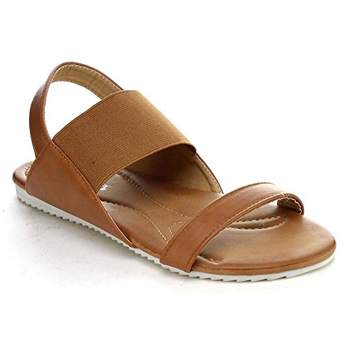 Nature Breeze Belinda-02 Women's Elastic Strap Two Tone Sole Flat Sandal