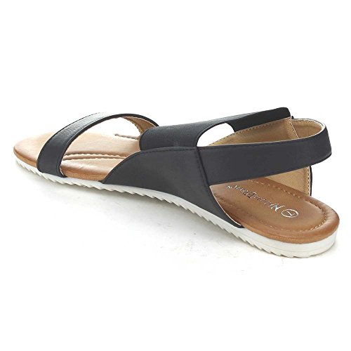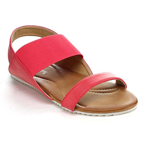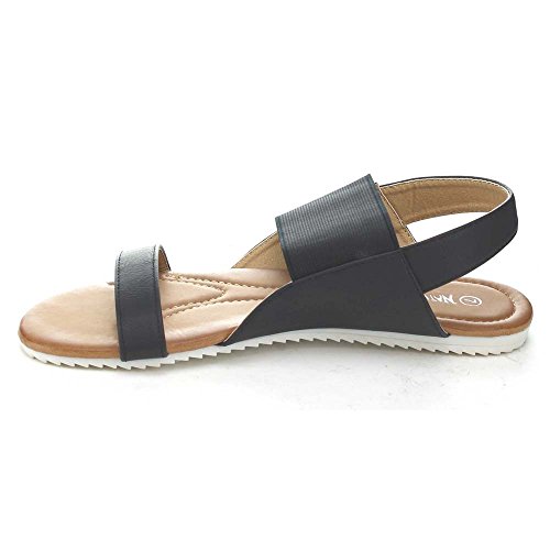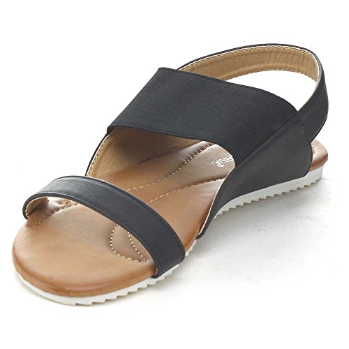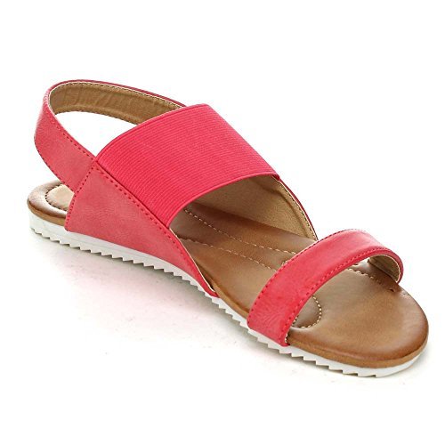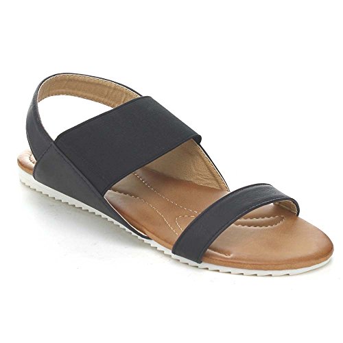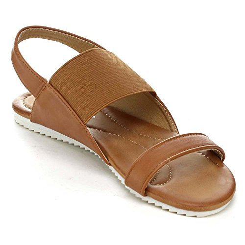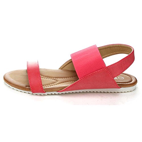 Product Description These series flat sandals it features a round open toe, elastic strap and a slingback for easy slip on wear, a two tone sole, a cushioned insole, an approximate 0.25 inch platform, and an approximate 0.75 inch low heel. 0