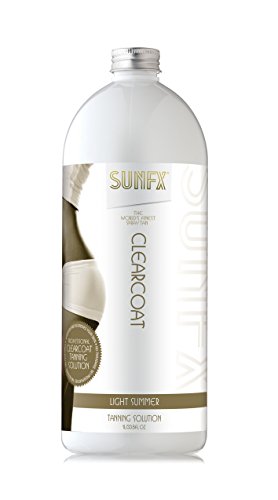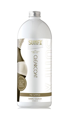 SunFX Clear Coat Dark Summer is a colorless solution which develops into a deep natural looking tan for medium to dark skin types. Clearcoat does not rub off onto clothing and enables your clients to avoid the white one minute dark the next appearance of other solutions. Perfect for those clients who don't want people to know it's a spray tan. 25 to 30 Spray Applications per LiterFeature