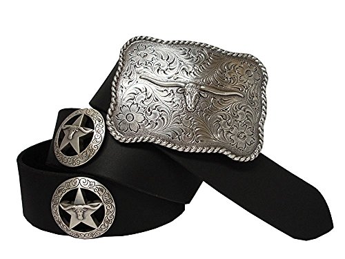 (Hagora)/Accessories/Belts Buckles/DIRECT FROM USA/Hagora Men Black Genuine Cowhide Silver Gold Star Concho Longhorn Buckle Belt