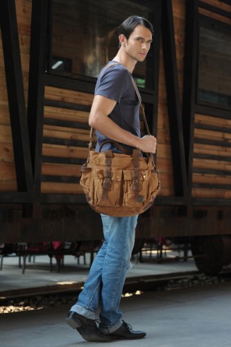 - Title : Kattee Unisex Cow Leather Trim Canvas School Travel Crossbody Shoulder Bag Handbag