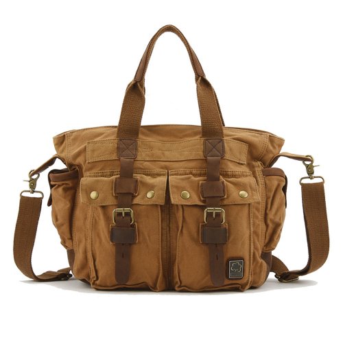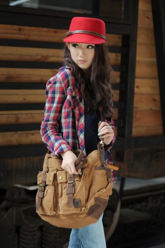 - Feature : 100% brand new & High quanlity / Materials: High Density Canvas/ Genuine Cow Leather / Size: 35cm(L)*32cm(H)*13cm(W)/13.7"(L)*12.6"(H)*5.1"(W); Strap length: 22cm/ 8.6inches / Weight: 1.2kg / Gender: Men & Women