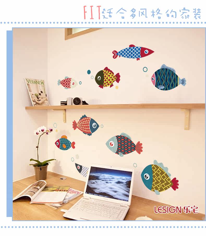 卡通幼儿园文艺彩色小鱼随心贴画可爱儿童房卧室自粘壁纸墙贴纸