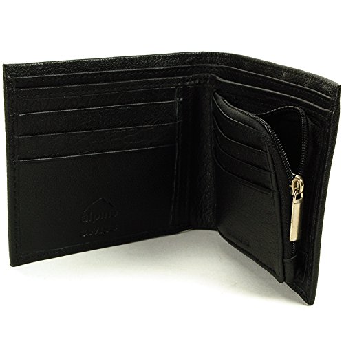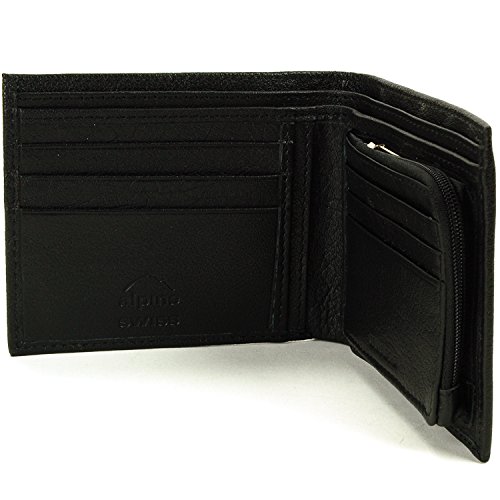 -. Binding : Apparel -. Brand : Alpine Swiss -. ClothingSize : One Size -. Department : mens -. Feature : RFID Blocking Zip Wallet. Tested & Approved by Independent Lab Tests. Alpine Swiss RFID Blocking Protection to Stop Thieves from Obtaining Personal or account information. / Measures: 4 3/4" x 3 7/8" x 1" / 6 Card Slots, 3 additional oversized card slots/receipt pockets / 2 Bill Sections divided to allow separation of large and small bills / Far Superior to many alternatives in the market today made by using household aluminum foil being used inside a wallet Noisy crinkly and most importantly not very effective in blocking signals. Alpine Swiss RFID Protected Wallets are soft durable & effect -. Label : alpine swiss -. Manufacturer : alpine swiss -. Model : By Alpine Swiss -. MPN : RFID127-Parent -. PackageQuantity : 1 -. PartNumber : RFID127-Parent -. ProductGroup : Apparel -. ProductTypeName : ACCESSORY -. Publisher : alpine swiss -. Size : One Size -. Studio : alpine swiss -. Title : Alpine Swiss Mens RFID Blocking Leather Wallet Zipper Coin Purse Card Slots Case