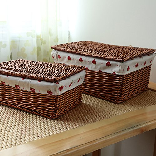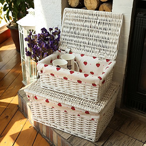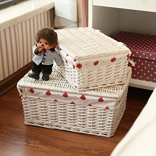 -. Feature : High quality, classic handmade wicker storage boxes , art & craft. / Stylish, white wicker woven , soft removable washable fabric liner, 2 leather belts tie the lid and the basket. / Multiuse sturdy construction storage box, for cosmetics ,books, toys, coins, album, fruit, under ware, baby clothes and other small sundries. Utility and suitable for bedroom, living room , closet, shelves or anywhere in your home. / Set of 2 baskets measuring 15.75"Lx11.81"Wx7.48"H(Large), 12.99"Lx9.06"Wx5.51"H (Small) . Please note that these products are handmade and the sizes may vary ±1 inch. / THE BEST CUSTOMER SERVICE: - With our famous 100% satisfaction, you can have peace of mind. If for any reason you're not completely happy with your purchase- if it breaks, if it's damaged in shipping, or even if you change your mind - simply let us know and we will either replace it or refund your money, your choice!