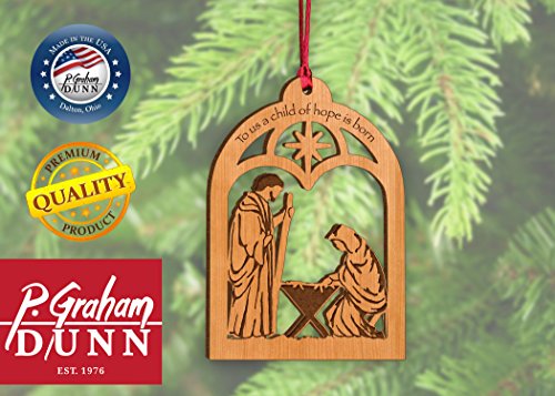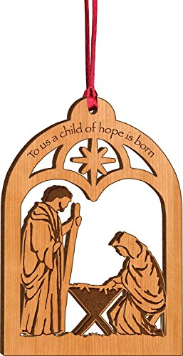To Us a Child of Hope is Born Mary Joseph Jesus Wood Christmas Ornament