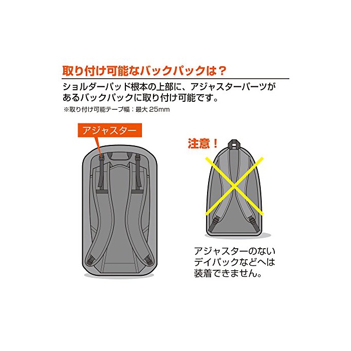 ※숄더 패드 근책의 상부에 adjuster 파트가 없는 데이 팩 등에는 장착 할 수 없습니다.