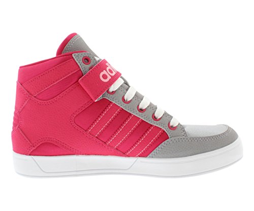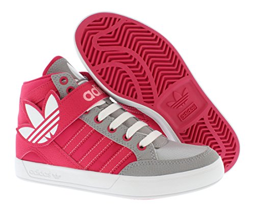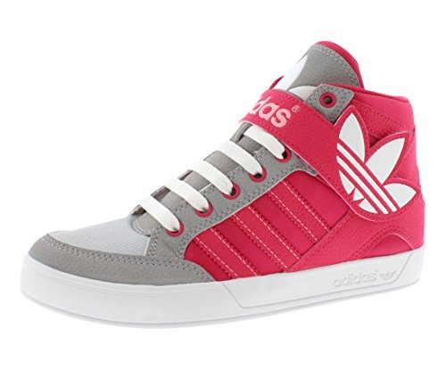 - Feature : Adidas / Boys / Athletic / The Hard Court Hi Big Logo sneakers are a must have for anyone wanting to make a statement.The shoes feature a classic high top sneaker design with lace up closure, contrasting color detail with large Adidas logo along side and heel, synthetic upper with synthetic leather overlays, padded collar and cushioned footbed and rubber outsole.