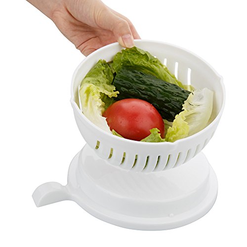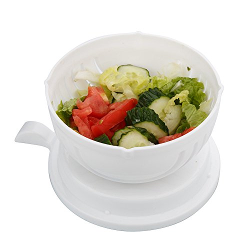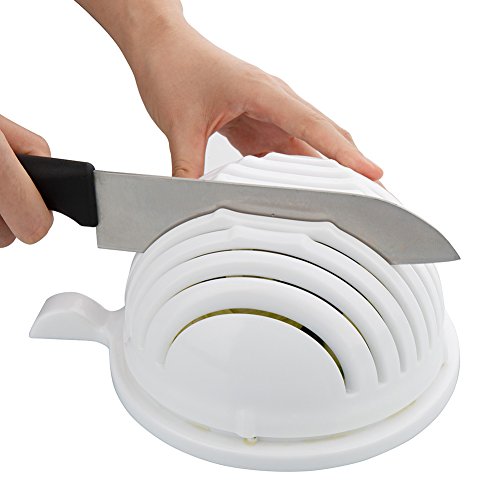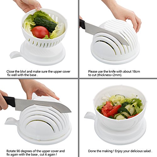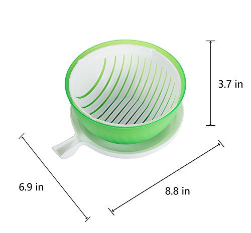 Description Wanna have a fresh, healthy, nutrition balanced salad ? The answer is Yes! Tired of all kinds of stuffs washing,filtering,slicing and chopping which drive you in a Mess? The answer is Yes! Here Comes your Saviour! This salad strainer bowl Easily provide you with a nutrition balanced salad, like it? No Hesitation! Just take it home and enjoy a nutritious and delicious salad Always Remember ! There comes with An Extra Bowl! Super for Washing ingredients! Super for Containing Your Own Salad World! Just imagine~A lazy afternoon, with a Big Bowl of fresh,Nutritious and delicious Salad in Your Arms~ Make this dream come true with this cute Salad cutter bowl sets! Cute Appearance with Simple Operations 1: Put the ingredients into the bowl for washing,make sure the ingredients are no more than 3/4 of the bowl. 2: Velopcover the bowl and make sure the upper cover fits well with the base. 3: Cut the ingredients in the card slot into small pieces for salad. 4: Rotate 90 degrees of the upper cover and fit again with the base. 5: Cut the ingredients again in the card slot to make them smaller. 6: Done ! Enjoy your delicious salad ! Warm tips Do not put too mauch ingredients, 3/4 of the bowl is perfect Make sure the cover fully fits. Kindly use a knife at about 18cm to cut Make sure the ingredients at their original positions while rotating the salad cutter bowl Specification The additional bowl weighs 0.18lb, with height at 3.7 inches,width at 7inches, and a capacity of 49 Oz; The green salad base weighs 0.15lb,with perimeter at 7 inches,cut board at 6.1 inches The green salad bowl weighs 0.25 pounds,with height at 3.5 inches,width at 6.5 inches,and a capacity of 44 Oz. Package Include: 1 x Salad Cutter Bowl 1 x Extra Salad Bowl 1 x Salad Cutting Board 1 x Instruction 0