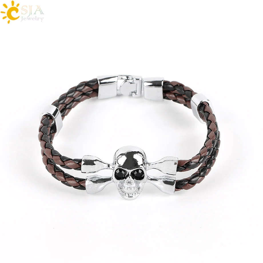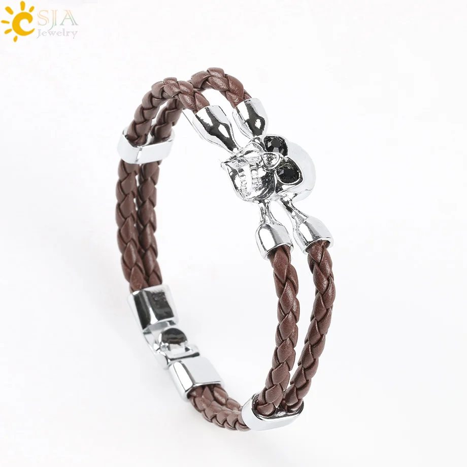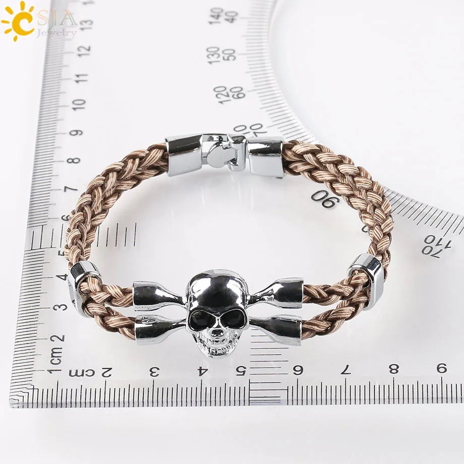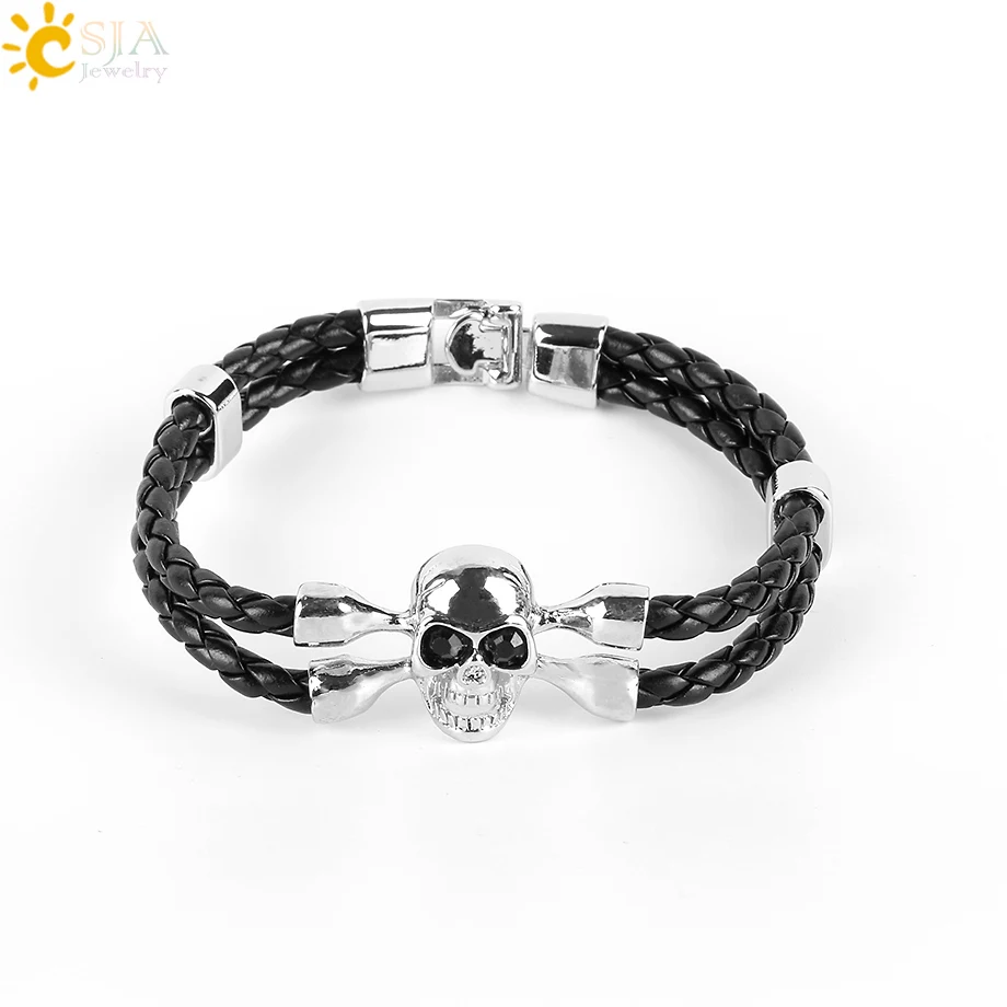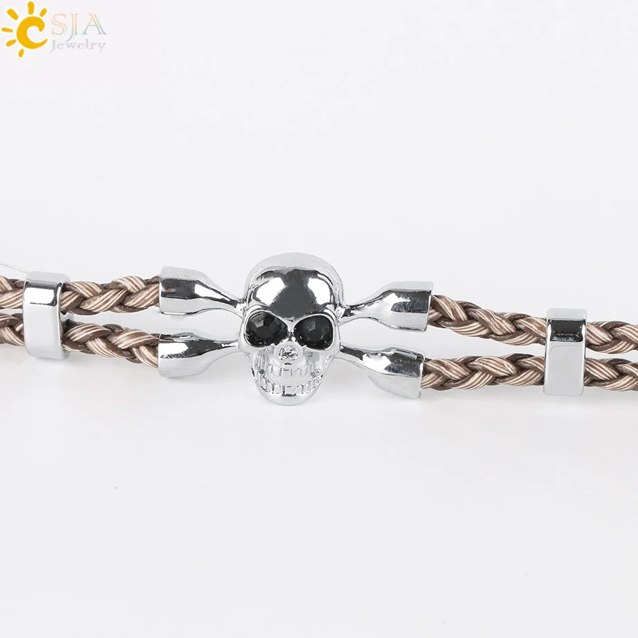 Bracelets Feature:Rock Punk Skeleton + 2 Layers Rope Chain + Crystal Rhinestone Beads