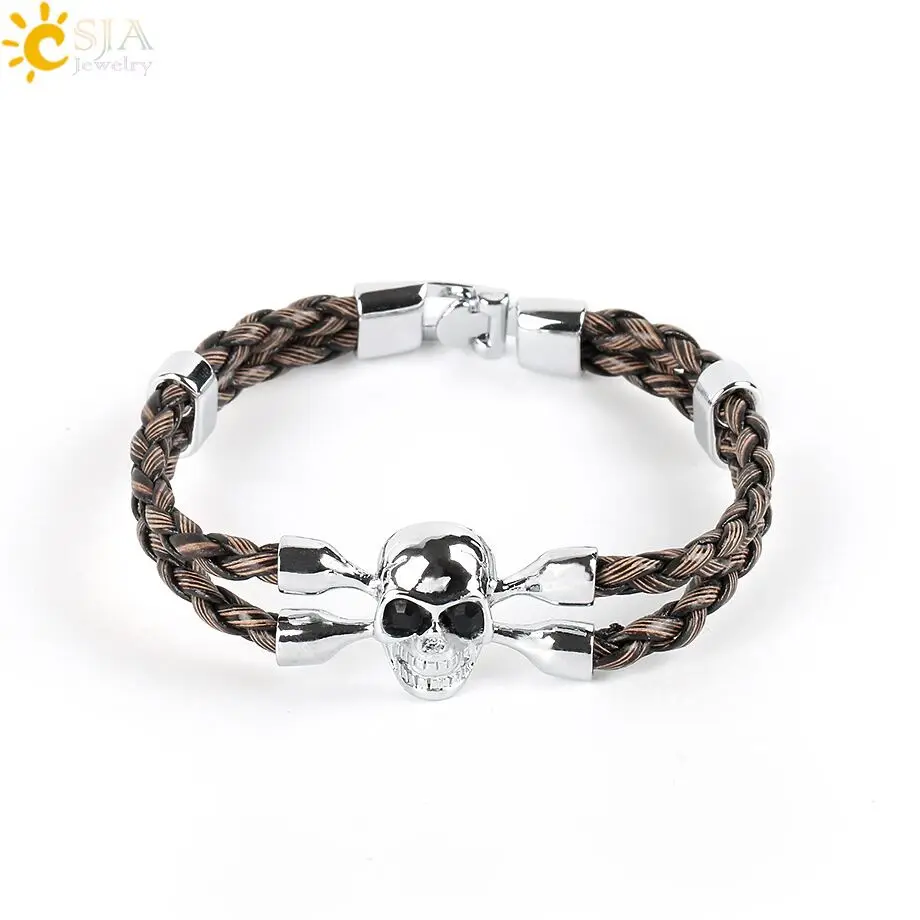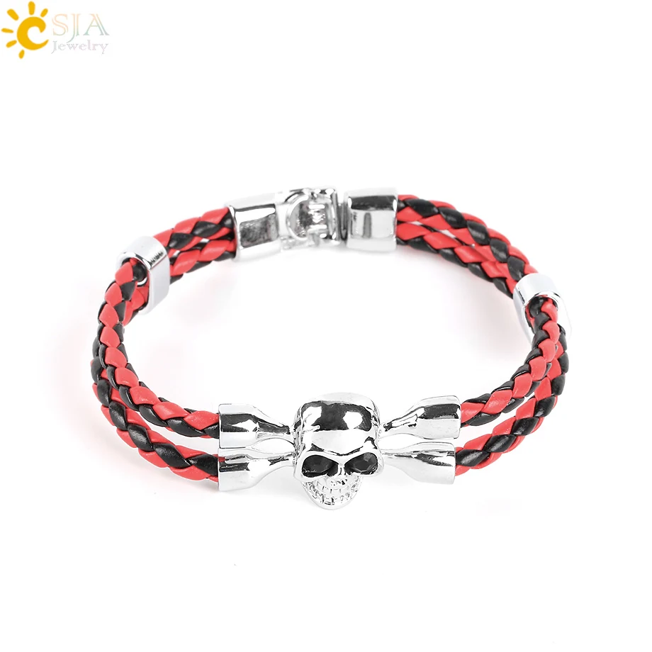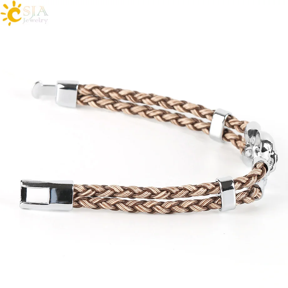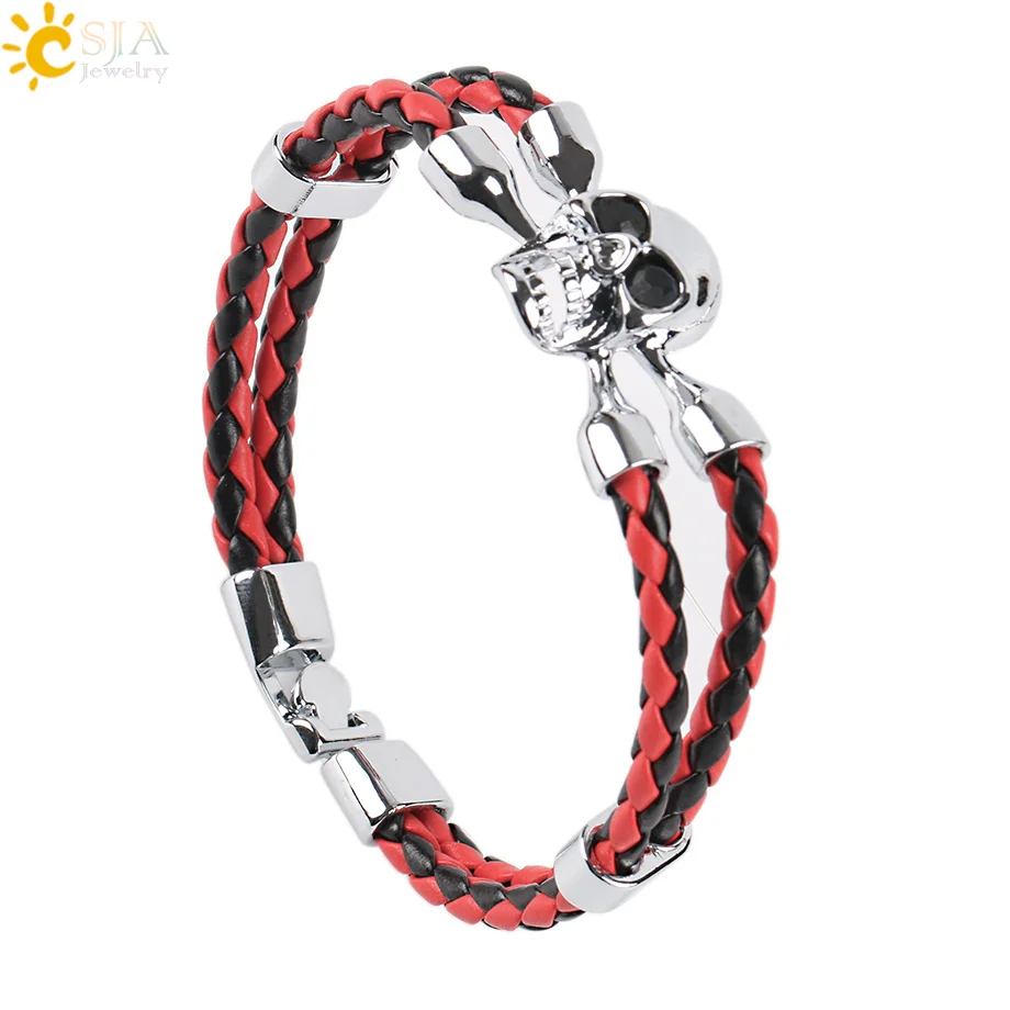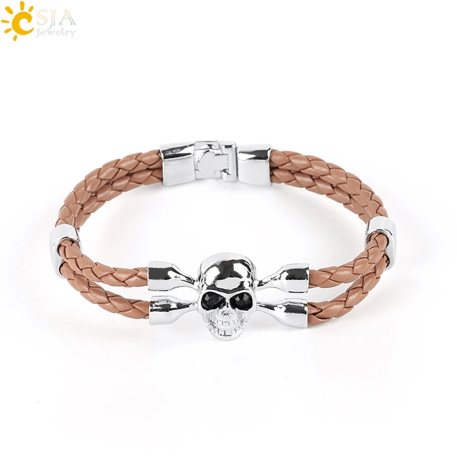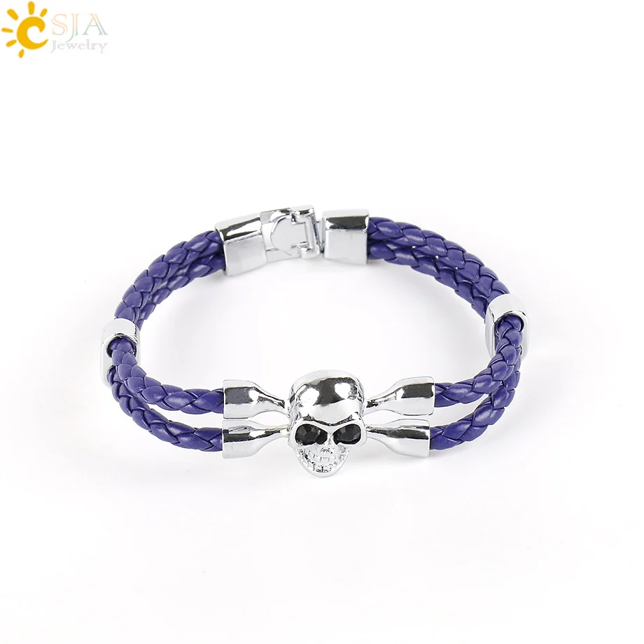 Bracelets Feature:Rock Punk Skeleton + 2 Layers Rope Chain + Crystal Rhinestone Beads