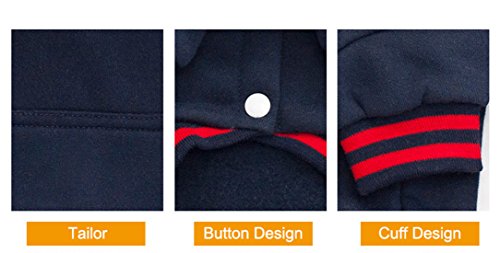 -. Feature : Comfortable & Fashionable: Hoodie Fleece Fabric Is Soft Naturally,Without Odors. Combining With Fashionable Energetic Double Stripes On Arms, Legs And Head, The Sweatshirt Make Your Little Pet Stand Out In A Crowd. / The Adorable And Gentle Coat, Never Worry About Your Baby's Outfits Clash With Others. And There Are Various Colors And Sizes For You To Choose. / Exquisite Workmanship: It Is Has High Quality And Durability. Every Needle And Line, Uniform And Particular, Complies With Rigid Manufacturing Standard. Besides, As For Snap Button Closure Design, It Is Convenient To Put On And Take Off The Hoodie. In The Meantime, It Will Avoid Clamping Pet's Fur Or Hurting Him Or Her. / Unique Two Legged Design: The Two Legged Hoodie Considerately Make Sure To Keep Pets Hindquarters Warm As Well, Especially In Cold Autumn And Winter Seasons. Also, Spring And Autumn Seasons Are Regular Molt Periods For Most Pet Dogs. Thus, The House Will Be Swarmed With Pet Fur, Which Is A Real Headache For All Families. Nevertheless, Two Legged Hoodie Is A Wise Choice. / Note: Please Measure Carefully Before Buying, And Take Each Measurement a Bit Loosely, So There Will Be Room For Your Dog To Move And Breathe, But Not Too Loose.