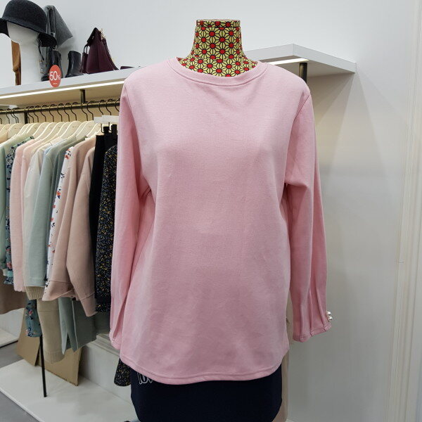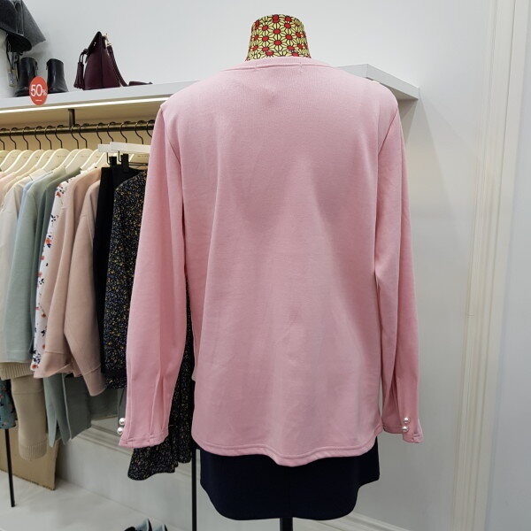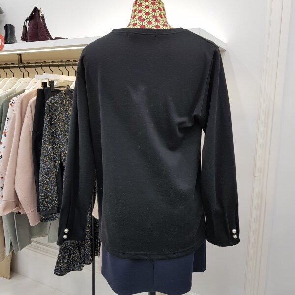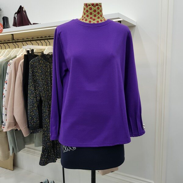 기본 라운드티여 소매에 셔링과 진주장식으로 포인트를 주었습니다. 비비드한 컬러감으로 다양한 아이템과 연출해보세요