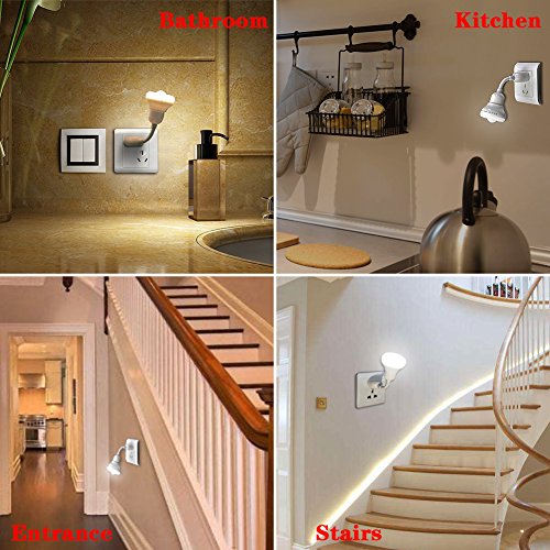 IMINOVO Light Sensor and PIR Motion Sensor LED Night Light, Flexible Rubber Goose Neck Easy to Change the Induction Angle, Plug in Wall, Working Automatically. Human Body Sensor Control Lamp.