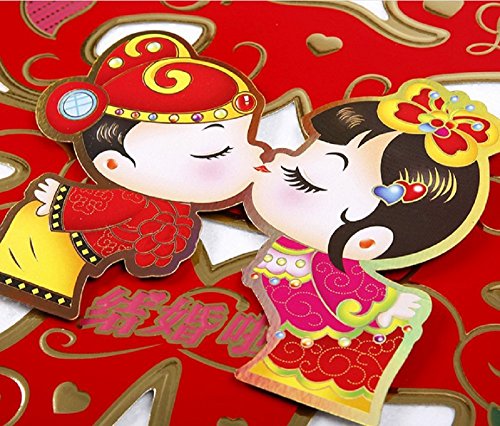 - Products: Golden Boy and Jade married friends happy word, product specifications: 48 * 44.5CM, a pack of 2, material:100 grams of laser cardboard, high-UV color printing, hydraulic bump process, die-cutting hollow, surface sticky cartoon