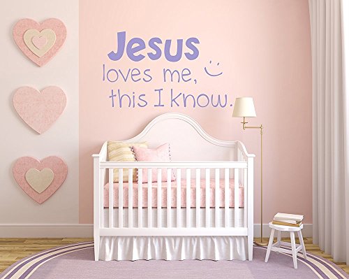 -. Title : Wall Decal Decor Jesus Loves Me Vinyl Decal Children's Wall Art Sticker Bedroom Decor Nursery Wall Decal Religious Decals(hydrangea purple, 13"h x22"w)