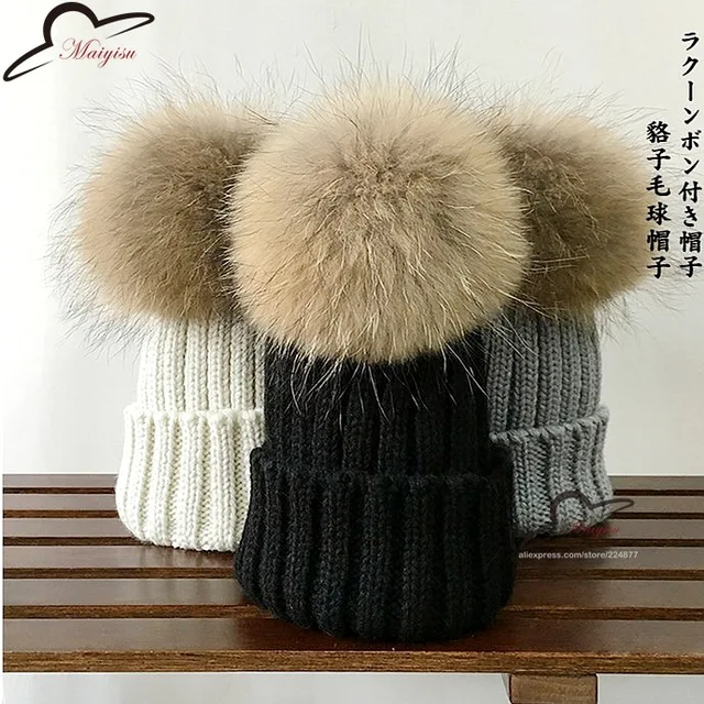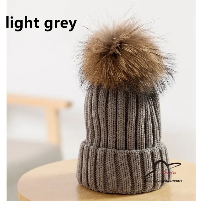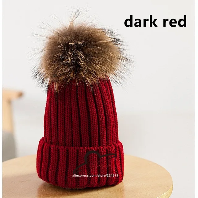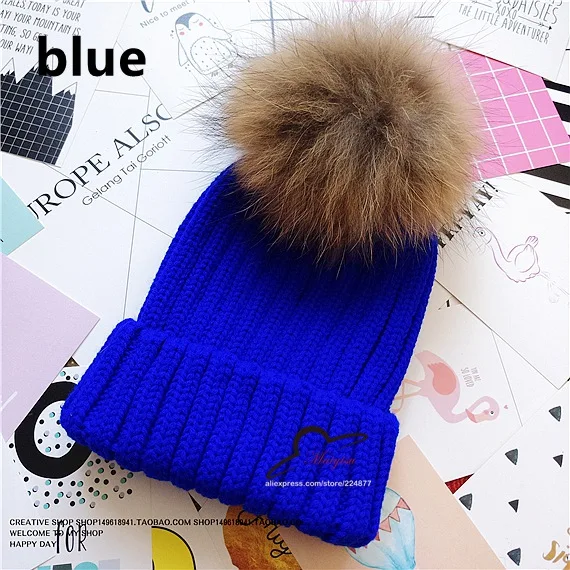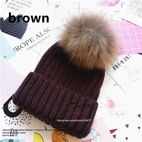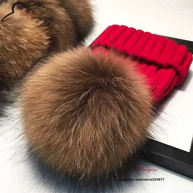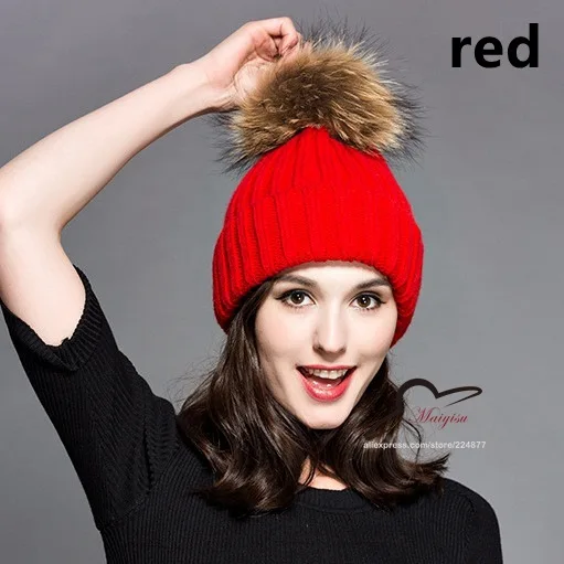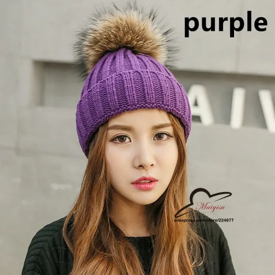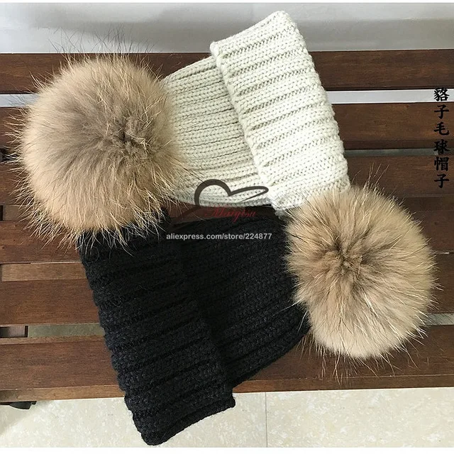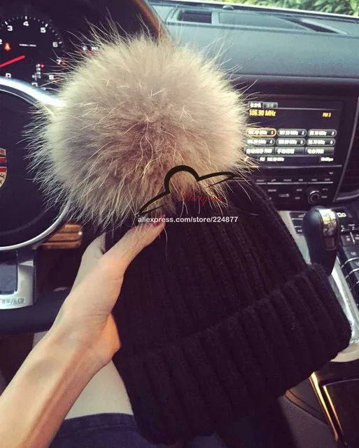 | [해외]진짜 모피 볼 캡 15 센치메터 치어 리딩 겨울 모자 여성 소녀 모직 모자 니트 비니 브랜드 새로운 두꺼운 여성 캡 |