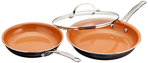 Gotham Steel 12-piece kitchen and cookware set: Gotham Steel is the first Product of its class to actually utilize high-grade titanium and ceramic as surface finishing. This sophisticated combination not only ensures maximal durability it also allows for multi-functional, all-around usage. Titanium plus ceramic coating. High-heat threshold to sear perfectly browned steaks! everything just slides right off, even burnt chocolate and cheese. Food flavor is not altered when cooking tomato-based or any acidic food products thanks to the ceramic component! the non-stick surface cleans easy! versatile: for stove-top cooking, or baking! rust-proof all over. Coating doesn't peel off with constant usage and washing. Included in the 12pc set: (1) Gotham Steel 8.5" non- stick ceramic and titanium fry pan, (1) Gotham Steel 10.25" non-stick ceramic and titanium fry pan, (1) lid for Gotham Steel 10.25" pan, (1) Gotham Steel non- stick ceramic and titanium 1Qt sauce pan, (1) lid for 1Qt. Sauce pan, (1) Gotham Steel non- stick ceramic and (1) titanium 1.5Qt stock pot, lid for 1.5Qt stock pot, (1) Gotham Steel non- stick ceramic and (1) titanium 2.5Qt stock pot, (1) lid for 2.5Qt stock pot, Gotham Steel non- stick ceramic and titanium 5Qt stock pot, (1) lid for 5Qt. Stock pot, (1) aluminum steamer insert for 5Qt stock potFeature