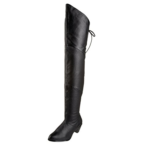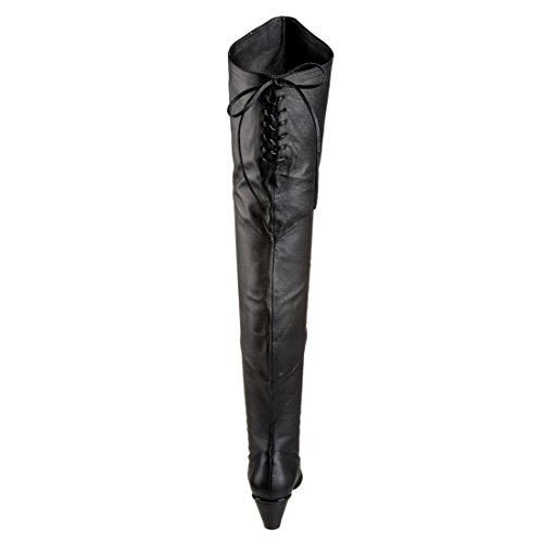 2 Inch High Heel Thigh Hi Pig Leather Boot Black Theatre Costumes Dress Up