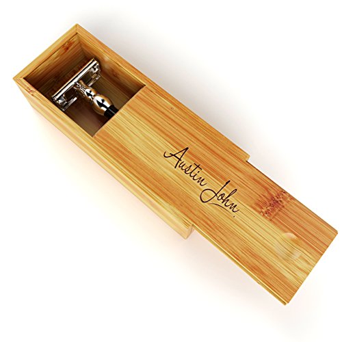 AUSTIN JOHN DOUBLE EDGE RAZOR SET - SET INCLUDES BUTTERLY SAFETY RAZOR, BAMBOO GIFT BOX AND 5 FEATHER RAZOR BLADES