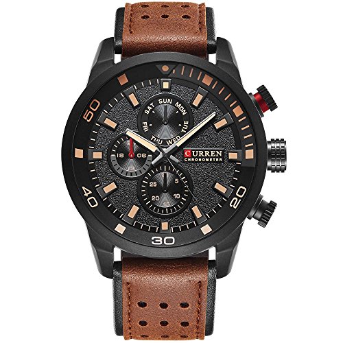 -. Title : CURREN Original Brand Men's Sports Waterproof Leather Strap Wrist Watch 8250 Brown Black