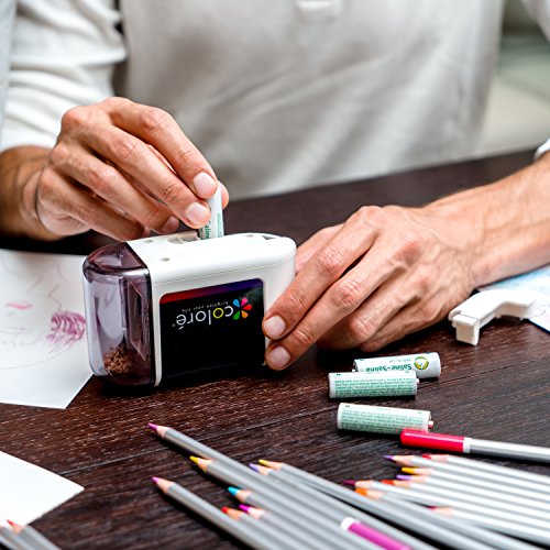 Colore Electric Pencil Sharpener - Powerful, Small, Battery Operated Heavy Duty, Safe Sharpeners for Kids, School, Office