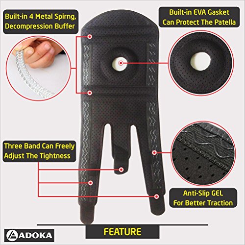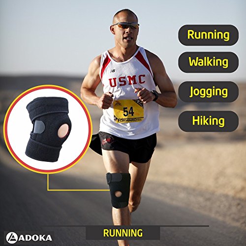 - ✅BEATHABLE AND LIGHTWEIGHT KNEE BRACES: A ADOKA knee brace for sports or athletic knee brace such as knee brace for running, knee brace for walking, knee brace for exercise, knee brace for basketball or knee brace for football is very breathable and light in weight to enable you to do exercises conveniently and easily.