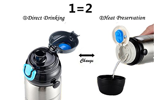 Double Wall Design with Double Lids:a water bottle with double lids,You can change the style by yourself direct drinking or hot/cold preservation