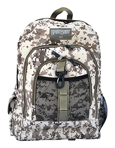 -. Binding : Sports -. Brand : East West U.S.A -. Label : East West USA -. Manufacturer : East West USA -. Model : BC104-P -. ProductGroup : Sports -. ProductTypeName : SPORTING_GOODS -. Publisher : East West USA -. Studio : East West USA -. Title : East West U.S.A BC104 Digital Camouflage Military Sports Backpack