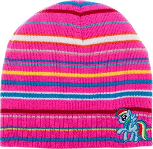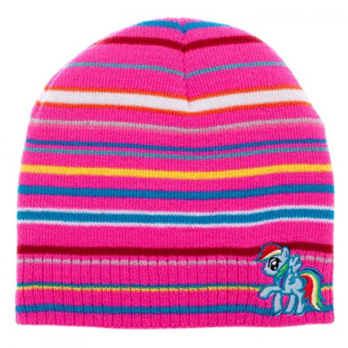 Product DescriptionMy Little Pony Rainbow Dash Striped Slouch Beanie Hat. Cap features character Rainbow Dash on a high quality multicolor striped knit cap.0