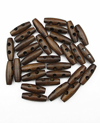 ALL in ONE 50pcs Brown 2 Hole Scrapbooking Sewing Wood Toggle Buttons Stained Chery Oval 30x10mm(1-1/8 X 3/8”)