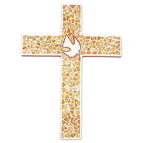 NOVICA Animal Themed Large Wood and Glass Mosaic Wall Cross, Orange, 'Illuminated Dove'