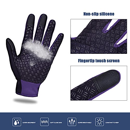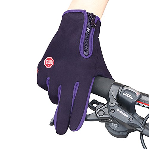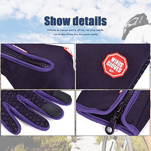 Cycling Gloves, Waterproof Touchscreen in Winter Outdoor Bike Gloves Adjustable Size- Purple (Large)