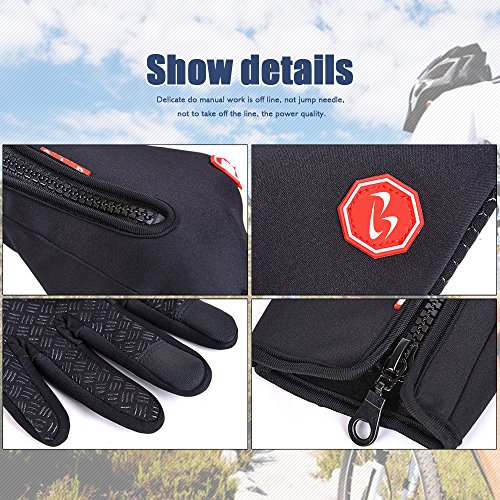 Cycling Gloves, Waterproof Touchscreen in Winter Outdoor Bike Gloves Adjustable Size- Black (X-Large)
